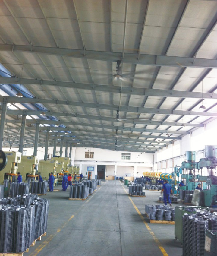 我公司生產的大型工業吊扇直接懸掛在廠房屋梁下,風力柔和,能加快車間空氣流通,有效降低車間內溫度,改善車間空氣環境質量,有利于員工的身體健康。